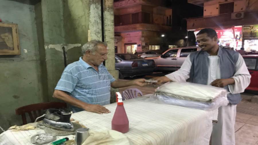 «مكوجى السعادة».. ابتسامة عم عبدالله تتحدى صعوبات الحياة