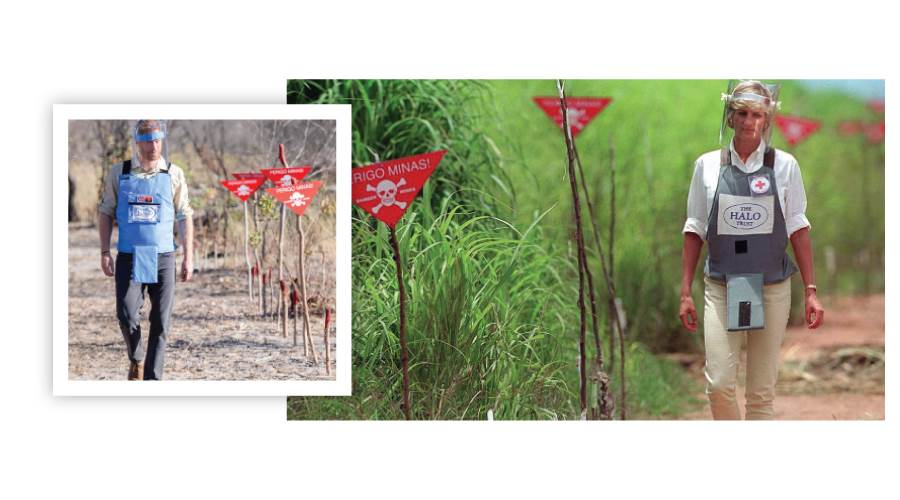 وخلال زيارته لحقل الألغام ارتدى الأمير نفس السترة الواقية تقريبًا التى ارتدتها والدته أميرة القلوب، وسار بنفس الثبات وسط الأرض القاحلة التى حوّلتها الحروب إلى فخاخ موت. وصرح «هارى» خلال الزيارة بأنه لو لم تزر والدته هذا المكان، لكان من الممكن أن يبقى مزروعًا بالموت حتى اليوم.