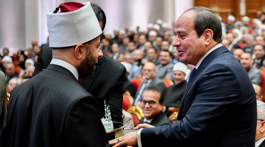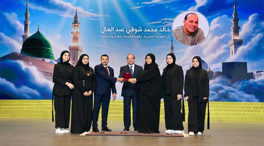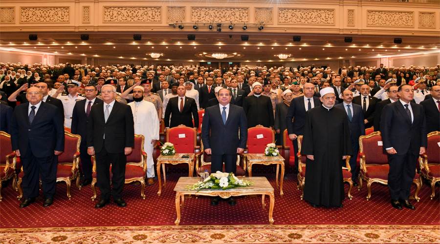 شهد الرئيس عبد الفتاح السيسى، الأربعاء الماضى، احتفال مصر بذكرى المولد النبوى الشريف، الذى أُقيم بمركز المنارة للمؤتمرات الدولية، وذلك بحضور كل من رئيس مجلس الوزراء؛ والإمام الأكبر شيخ الأزهر الشريف؛ ووزير الأوقاف؛ ومفتى الجمهورية؛ إلى جانب رئيسى مجلسى النواب والشيوخ، وعدد من الوزراء وكبار رجال الدولة.