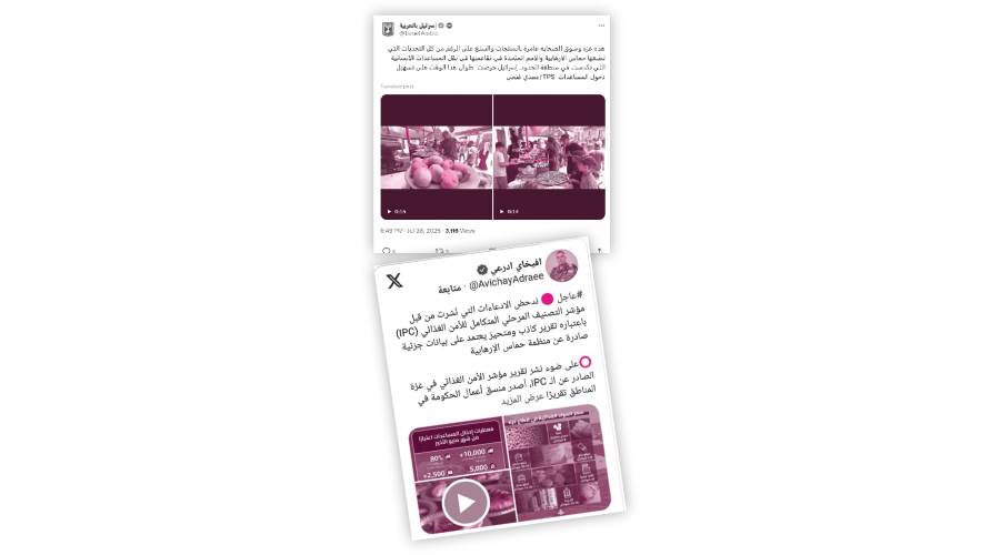 وادعى مقطع فيديو، بثته وزارة الخارجية الإسرائيلية وانتشر عبر حملات إعلانية مدفوعة، أن «الطعام متوفر فى غزة وأى ادعاء آخر هو كذبة»، وحصد المقطع أكثر من ستة ملايين مشاهدة.