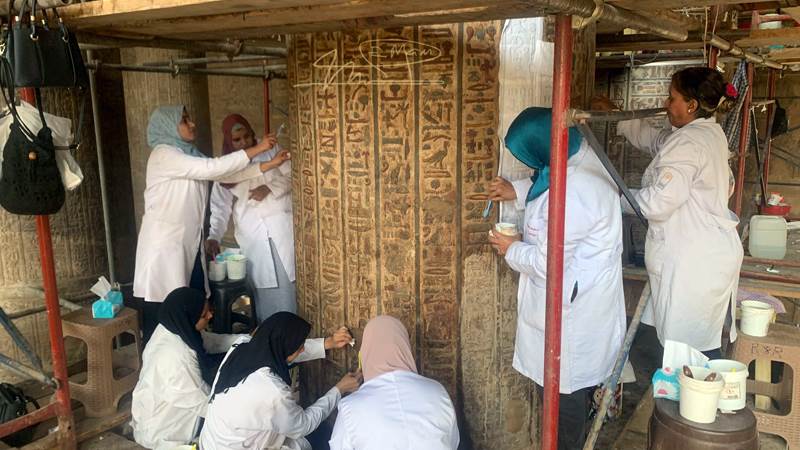 وأسفرت أعمال الترميم التى تمت على الجدران عن الكشف عن عدد كبير من النقوش لأول مرة، فى واحد من أهم المعابد المصرية القديمة.