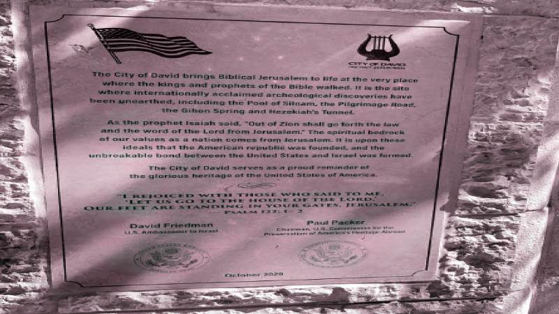 كما زار السفير الأمريكى والواعظ الإنجيلى مايك هاكابى الممر؛ والذى أعلن منذ اليوم الأول لتوليه منصبه أنه يمثل ترامب ويسوع فى إسرائيل؛ مؤكدًا بذلك التداخل العميق بين السياسة والدين فى دعم الاحتلال؛ وبالنسبة لهاكابى كما للمستوطنين؛ فإن الحفريات الأثرية ليست مجرد نشاط علمى بل دليل إلهى يبرر السيادة الإسرائيلية على الأراضى الفلسطينية؛ حتى لو تطلب ذلك طرد الفلسطينيين وتهجيرهم منها؛ إلى جانب ذلك وضع على الحائط فى مقدمة الممر شاهد يبرهن على المشاركة الإسرائيلية الأمريكية فى طمس هوية القدس الأصلية؛ ويظهر على الشاهد علم الولايات المتحدة وشعار اللجنة الأمريكية للحفاظ على التراث الأمريكى فى الخارج.