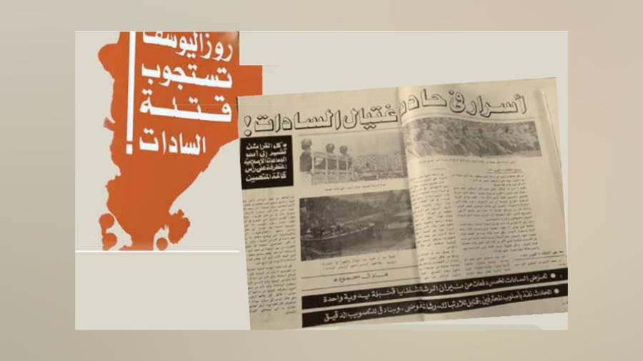 جاء أول عدد لمجلة «روزاليوسف» رقم (2783) الصادر بتاريخ 12 أكتوبر 1981؛ بعد حادث الاغتيال بغلاف مهيب؛ حيث اتشحت الترويسة بالسواد، ووقف السادات شامخًا أمام الأهرامات، وجاء المانشيت الوحيد بعنوان «الاعتداء على مصر»، ويعكس الغلاف والمانشيت موقف ورسالة «روزاليوسف» الذى تبنته مع حادث الاغتيال، حتى لو كان هناك اختلاف سياسى مع إدارة السادات، ناقشته المجلة عبر سنوات، إلا أنها اعتبرت حادث اغتياله بمثابة الاعتداء على مصر، فى رسالة صريحة للاصطفاف الوطنى فى هذه اللحظة الحرجة التى تشهدها البلاد.
