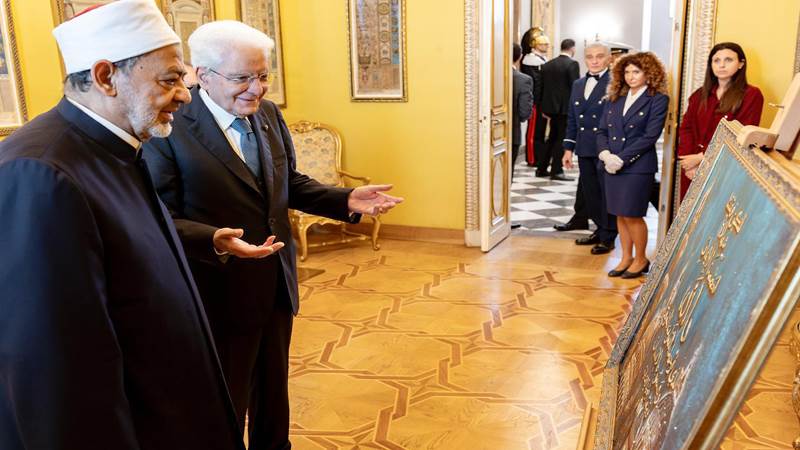 فى السياق ذاته، شهدت روما لقاءً مهمًا بين الإمام الأكبر والرئيس ماتاريلا، حيث أكدا على ضرورة الالتزام بخطة السلام فى الشرق الأوسط، ووقف العدوان على غزة، وتسهيل دخول المساعدات الإنسانية للمحاصرين.