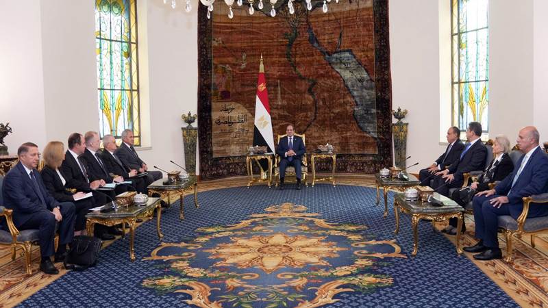 اللقاء تناول أيضاً سُبل تعزيز العلاقات الثنائية بين مصر وروسيا، واستعراض فرص تطويرها في مختلف المجالات، لا سيما السياسية والتجارية والاستثمارية. كما تطرق اللقاء إلى مشروع إنشاء المنطقة الصناعية الروسية في المنطقة الاقتصادية لقناة السويس، ومشروع محطة الضبعة النووية، وذلك إلى جانب ملفات أخرى، حيث شدد الرئيس على أهمية تكثيف التعاون الاقتصادي والاستثماري بين البلدين، والعمل على زيادة حجم التبادل التجاري، وتعزيز التعاون في قطاع السياحة.