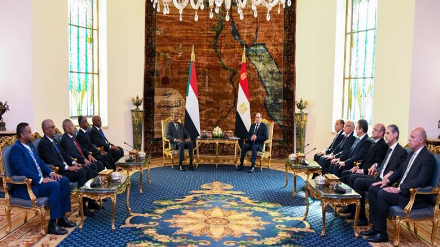 وصرّح المتحدث الرسمى باسم رئاسة الجمهورية؛ بأنّ مراسم الاستقبال الرسمية شملت استعراض حرس الشرف وعزف السلامَيْن الوطنيَّيْن لجمهورية مصر العربية وجمهورية السودان، أعقبها التقاط صورة تذكارية.. ثم عقدت جلسة مباحثات موسّعة بمشاركة وفدَىّ البلدَين، تناولت سُبُل تعزيز العلاقات الثنائية، بما يجسّد تطلعات الشعبَين الشقيقين نحو تحقيق التكامل والتنمية المتبادلة. واختُتمت المراسم بمأدبة غداء أقيمت على شرف ضيف مصر الكريم.