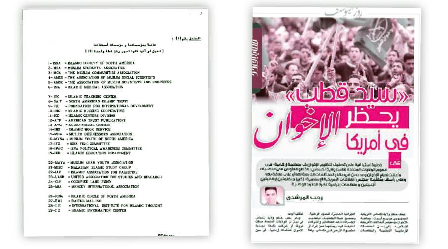 الوثيقة التى حملت عنوان «مذكرة تفسيرية.. الهدف الاستراتيجى العام للجماعة فى أمريكا الشمالية» المكونة من 18 صفحة ظهرت فى عام 2007 أثناء محاكمة مؤسسة الأرض المقدسة، وهى أكبر قضية تمويل للإرهاب فى تاريخ الولايات المتحدة وكشفت هذه الوثيقة التى صدرت عام 22 مايو عام 1952 حوالى 29 منظمة قالت إنها «قائمة بمؤسساتنا ومؤسسات أصدقائنا.. تخيل لو أنها كانت تسير بخطة واحدة.