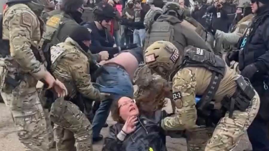وأضاف «كانت تلك المرأة غير محترمة جدا تجاه جهات إنفاذ القانون، رأيت الأصوات نفسها، والتكسير نفسه، ولا يمكنك فعل ذلك سواء كانت الشرطة، أو إدارة الهجرة، أو دوريات الحدود، أو أى شخص آخر، علينا احترام إنفاذ القانون». ووصف المتظاهرين بأنهم «مخربون محترفون».
