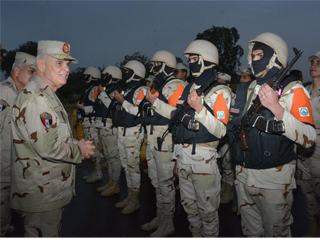 تفقد الفريق محمد فريد رئيس أركان حرب القوات المسلحة بعد منتصف، أول أمس الخميس، عناصر تأمين المجرى الملاحى لقناة السويس ونقاط حرس الحدود بنطاق الجيش الثانى الميدانى للاطمئنان على مدى جاهزيتهم لتنفيذ مهامهم، والوقوف على مستوى الكفاءة القتالية للعناصر المشاركة فى أعمال التأمين، وناقش عددًا من الضباط والجنود فى أسلوب تنفيذهم لمهامهم القتالية المختلفة وكيفية مواجهـة المواقف الطارئة التى يمكن التعرض لها، والإجراءات المتخذة لتأمين كافة المناطق المحيطة بقطاعات المسئولية.