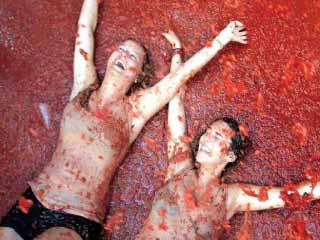 خلال La Tomatina أو مهرجان الطماطم، تقليد يتكرر سنويّا منذ نهاية الحرب العالمية الثانية، تستمر فعالياته لمدة أسبوع، تتخلله عروض موسيقية ومسرحيات وألعاب نارية، وخلاله تتحول شوارع البلدة الصغيرة إلى أنهار من عصير الطماطم؛ حيث يرمى الناس من جميع أنحاء البلدة الطماطم الناضجة على بعضهم البعض فى معركة شرسة تشارك فيها النساء والرجال معًا، وتقرّها الدولة لمدة ساعة وبعدها تتم تغطية ساحة البلدة بحطام الطماطم، وتقوم سيارات الإطفاء بتنظيف الشوارع بالخرطوم، وغالبًا ما يستخدم المشاركون الخراطيم التى يوفرها السكان المحليون لإزالة الطماطم من أجسامهم.