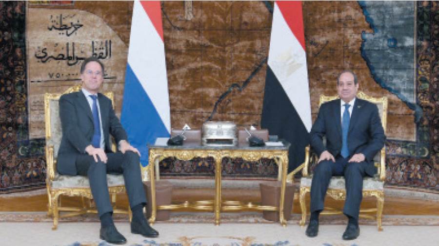 جاء ذلك خلال استقبال الرئيس عبدالفتاح السيسي، رئيس وزراء مملكة هولندا مارك روته، بقصر الاتحادية. وشهد اللقاء التباحث بشأن تطوير العلاقات الثنائية، ومستجدات الأوضاع الإقليمية، خاصة جهود مصر لوقف إطلاق النار وتقديم المساعدات الإنسانية لأهالى قطاع غزة.