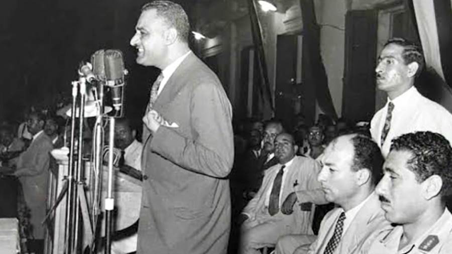 وجاء على لسان جمال عبد الناصر: «أيها المواطنون، إننا لن نمكن المستعمرين أو المستبدين، إننا لن نقبل أن يعيد التاريخ نفسه مرة أخرى، إننا قد اتجهنا قدمًا إلى الأمام لنبنى مصر بناء قويًا متينًا، نتجه إلى الأمام نحو استقلال سياسى واستقلال اقتصادى، نتجه إلى الأمام نحو اقتصاد قومى من أجل مجموع هذا الشعب، نتجه إلى الأمام لنعمل، ولكننا حينما نلتفت إلى الخلف إنما نلتفت لنهدم آثار الماضى، آثار الاستبداد، آثار الاستعباد، آثار الاستغلال، آثار السيطرة، إنما نتجه إلى الماضى لنقضى على جميع آثاره».